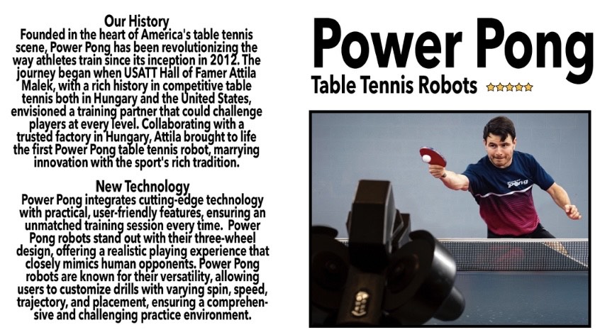 Attila’s deep passion for table tennis and his keen understanding of players’ needs were the driving forces behind Power Pong’s development. Originating from Costa Mesa, California, where Attila dedicated himself to coaching and inspiring young players, the Power Pong brand has grown into a symbol of excellence in the table tennis community.